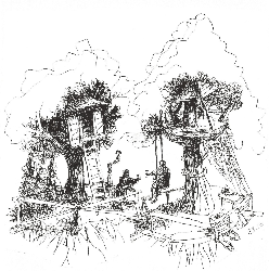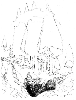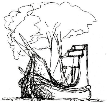 . . . did you say swimmin’ . . says wvRvw a two headed turtle to rvWvr this funny flyin’ sun ‘n sail fish, who in an earlier time had escorted ted , this gnarled little pine that had slipped off another shore , all the way back to windy ridge , mr. mueller’s ancestral island retreat , and a destination that the little fellow now likes to call his home